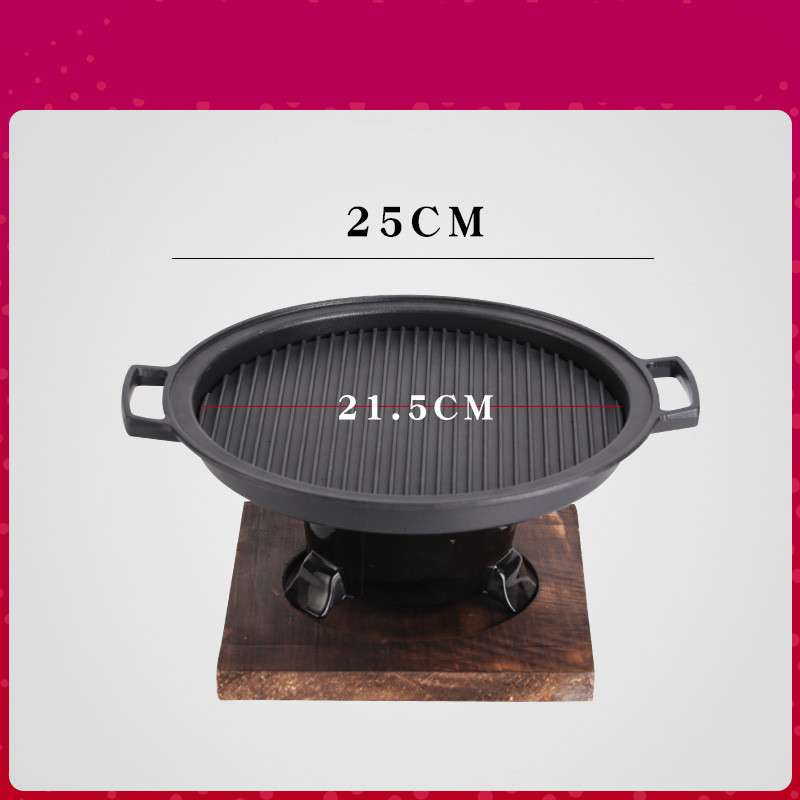 Grill/Plate specifications: 25cm split-bottom barbecue plate + aluminum three-pronged stove with barbecue clip and oil brush, 27cm round striped plate + large carbon stove free 5 free gifts, large carbon stove + 28cm cast iron grill pan free 2 cups 1 clip , Medium-sized carbon stove + 26cm cast iron bakeware free 1 cup and 1 clip, small carbon stove + 22cm cast iron bakeware free 1 cup and 1 clip