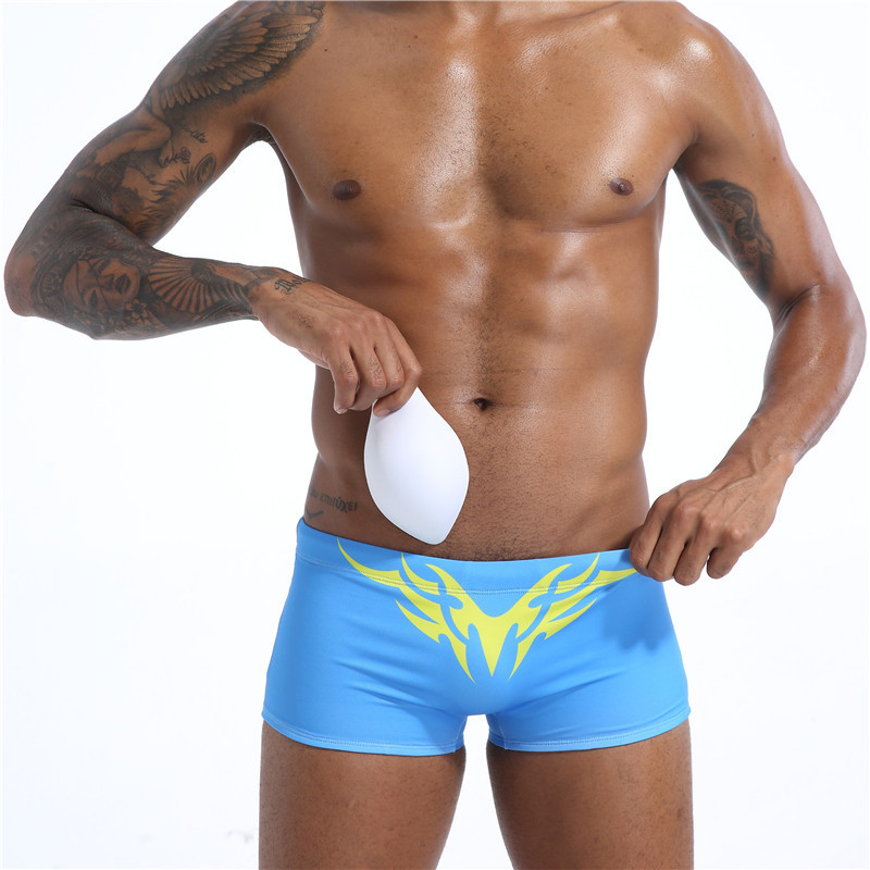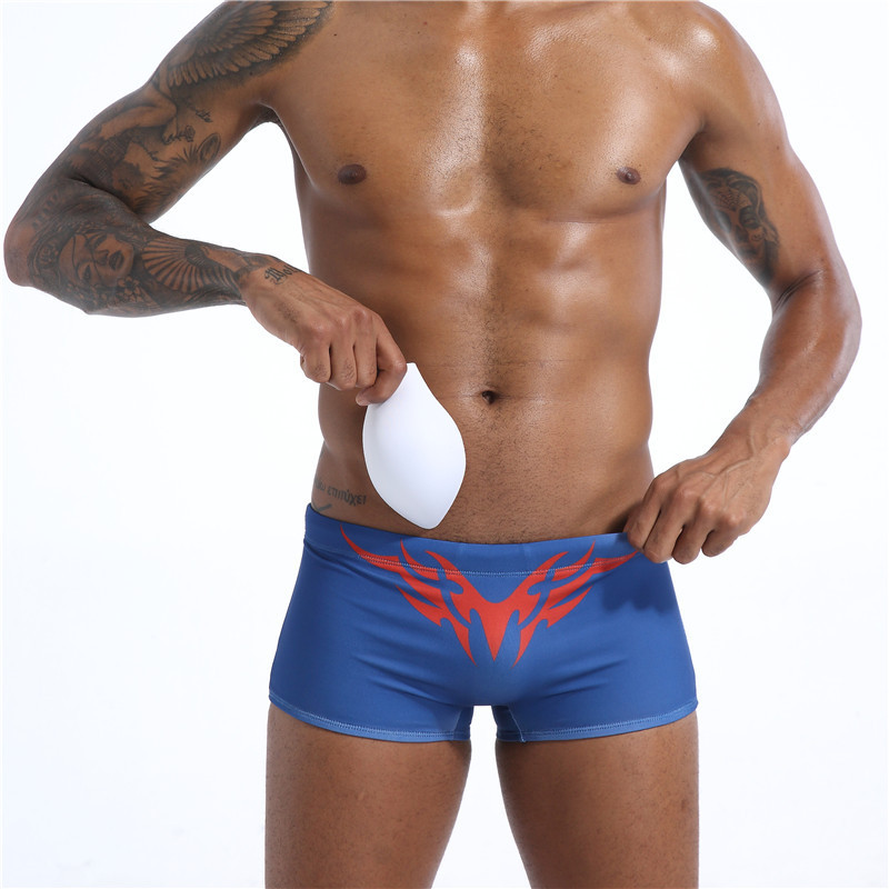 Men’s Low Waist Boxer Removable Cup Swimming Trunks