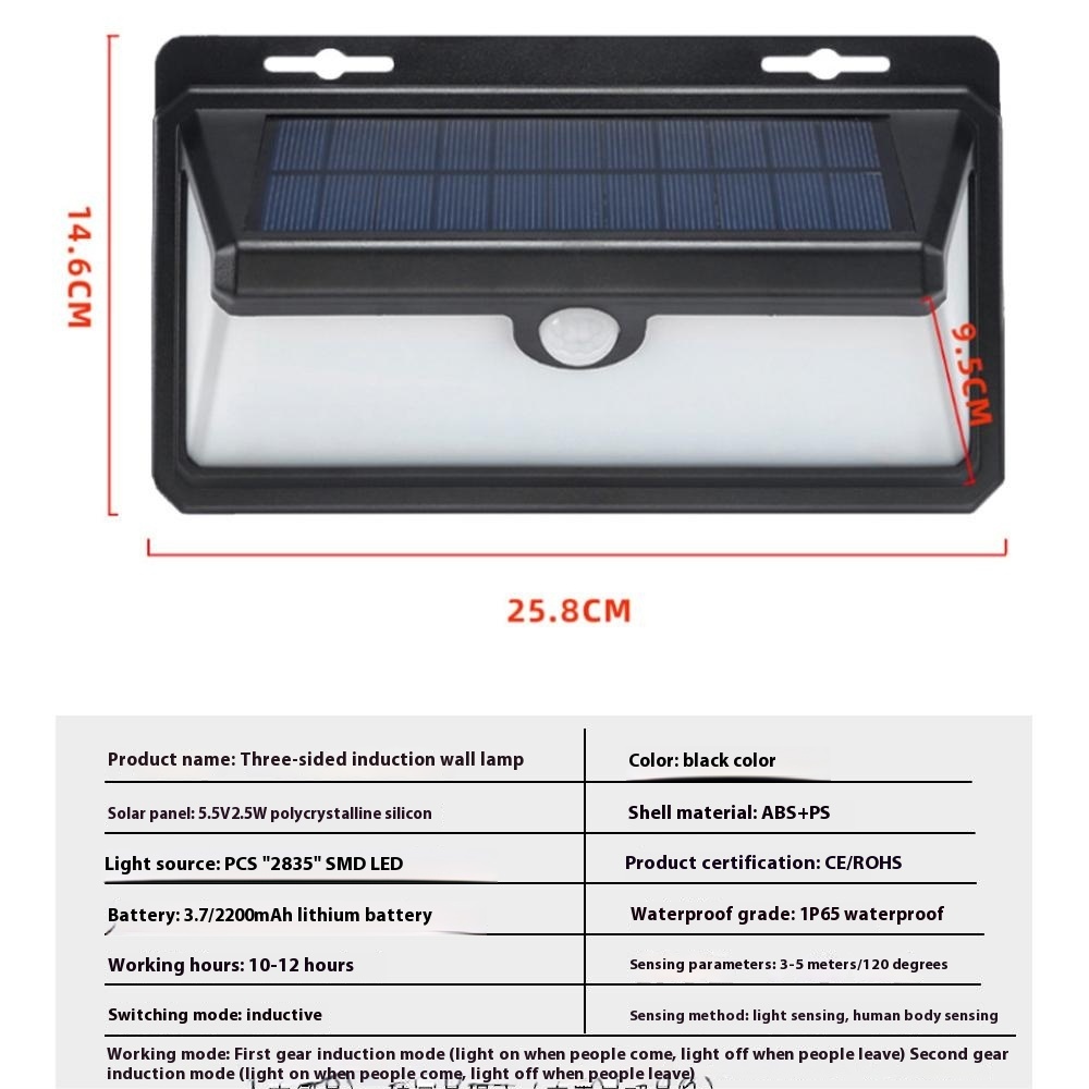 Outdoor Solar Courtyard Human Body Induction Wall Lamp Intelligent Light Sense Garden Villa Balcony Exterior Wall